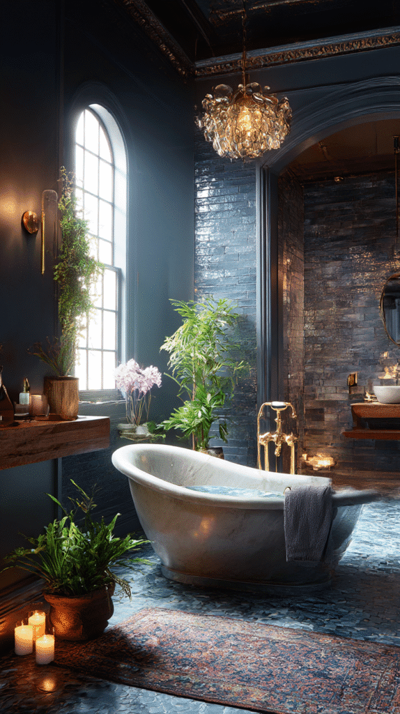 First up, you gotta pick your palette—charcoal grays, deep blues, or even earthy greens. Let’s say you love blues. In a moody master bath, try combining navy walls with gold accents. It’s like your bathroom is wearing a designer suit.