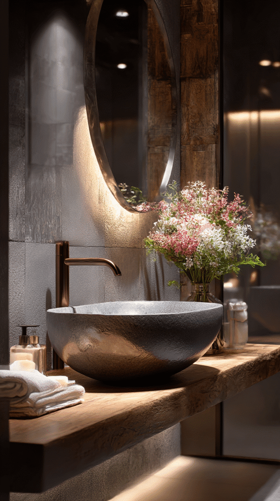 Example: A friend of mine layered a dark tiled floor with a reclaimed wood vanity—and it looked straight out of a design magazine!