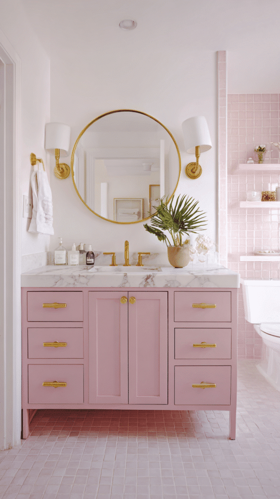 Don’t overlook the power of paint. A simple feature wall painted in Rose Quartz or Baby Blush can dramatically change your bathroom’s vibe. Using non-toxic, mildew-resistant paints like those from Sherwin-Williams ($20-$50 per gallon) ensures longevity and safety in moist environments.