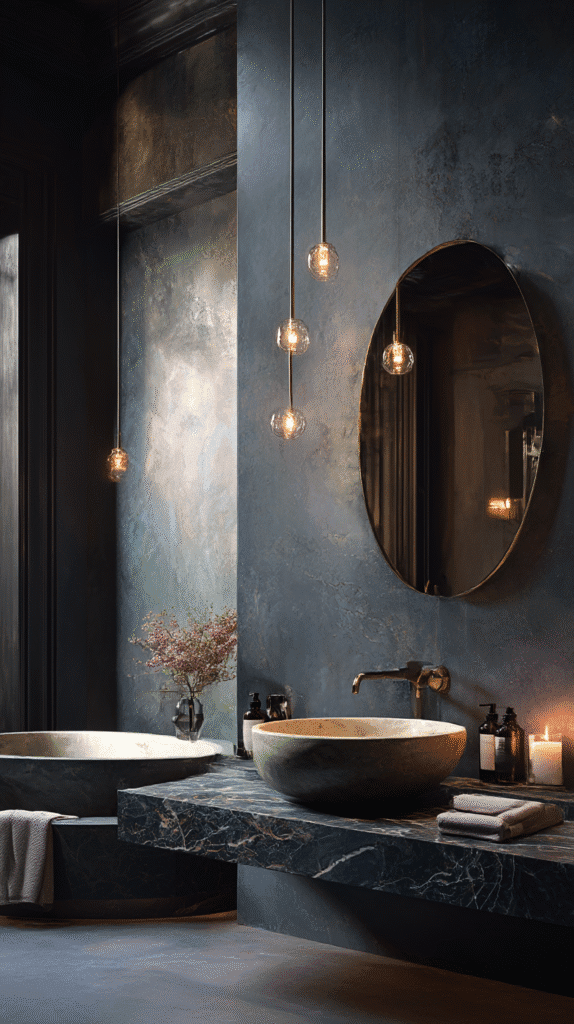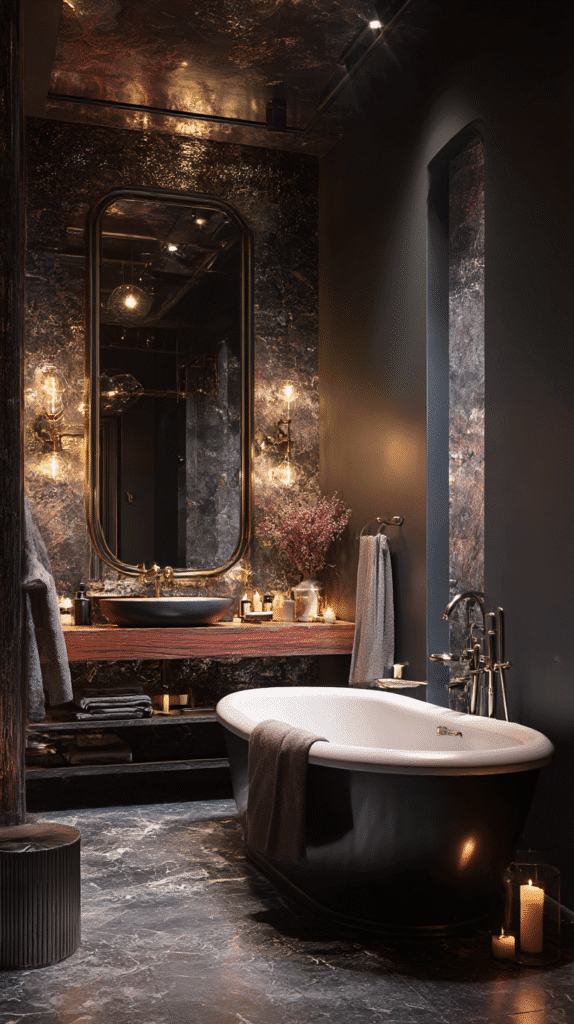 But it’s not just about ambience. A moody bathroom often incorporates natural materials like rich woods, slate, or even darker metals. These materials not only up the sophistication factor but also add a textural element that makes your bathroom feel like a luxurious escape.