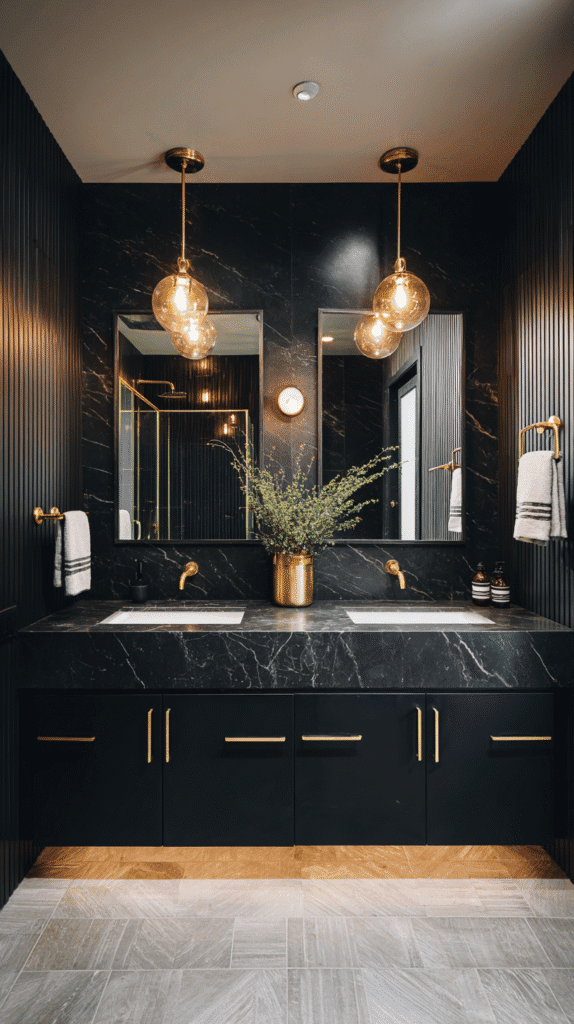 While a black bathroom can be a showstopper, it’s easy to make missteps. One common mistake is forgetting scale and proportion. Black can overwhelm a small space if not carefully balanced. Use mirrors strategically to reflect light and expand the space visually.