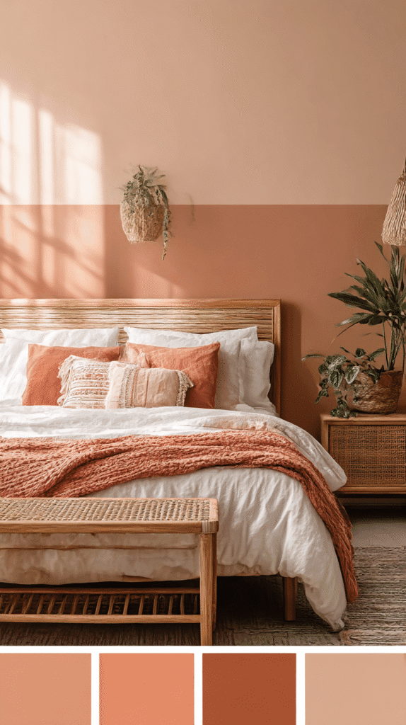Peach and brown bedrooms are gaining traction, and it’s easy to see why. This trend is set to continue into 2026 as more people seek sustainable, soothing home environments. The minimalist aesthetic aligns with eco-conscious living, where natural materials and muted tones merge seamlessly.