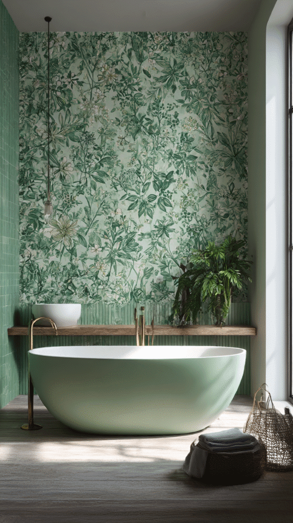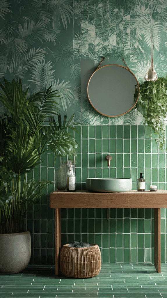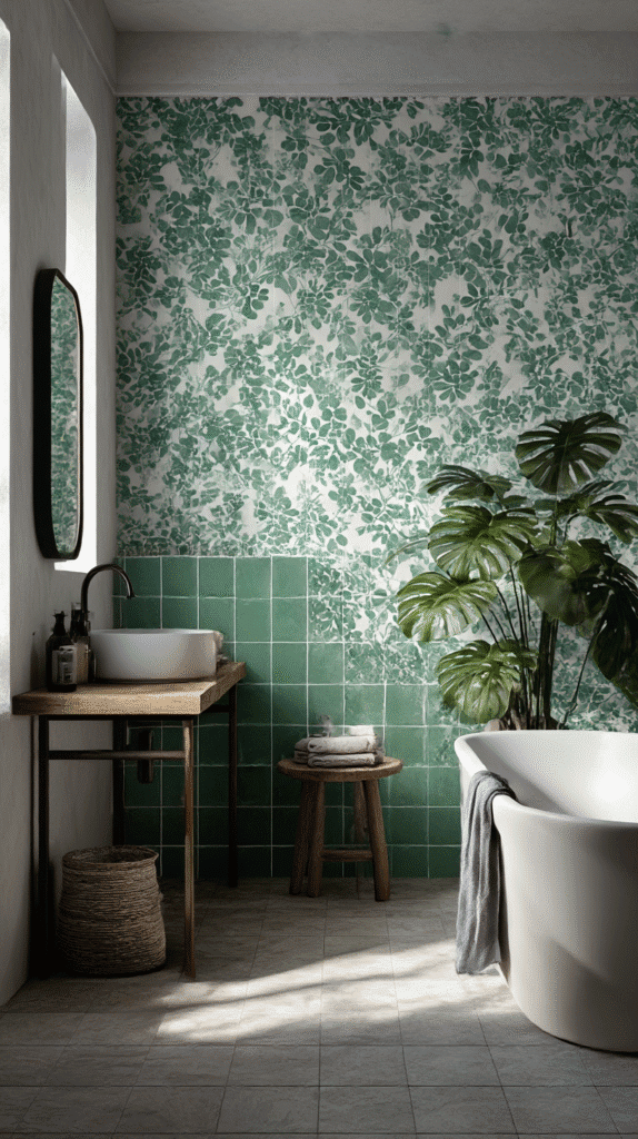 Why is this topic suddenly bubbling to the surface like a fresh spring? Simply put, the design world is enamored with merging classic and contemporary styles. Green tiles are timeless—think mid-century modern tiles brimming with character. But today, they’re undergoing a revolution when paired with wallpaper, creating a versatile backdrop that hints at luxury without the price tag. And yes, I’ll show you exactly how you can bring this trend to life in your own bathroom.