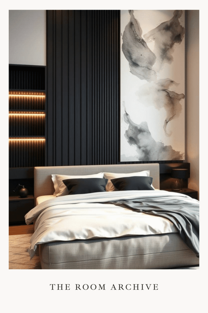 Wall art and decorative objects bring personality to your black bedroom. Choose metallic or white accents to contrast with dark walls. A statement art piece or framed photos can be great.