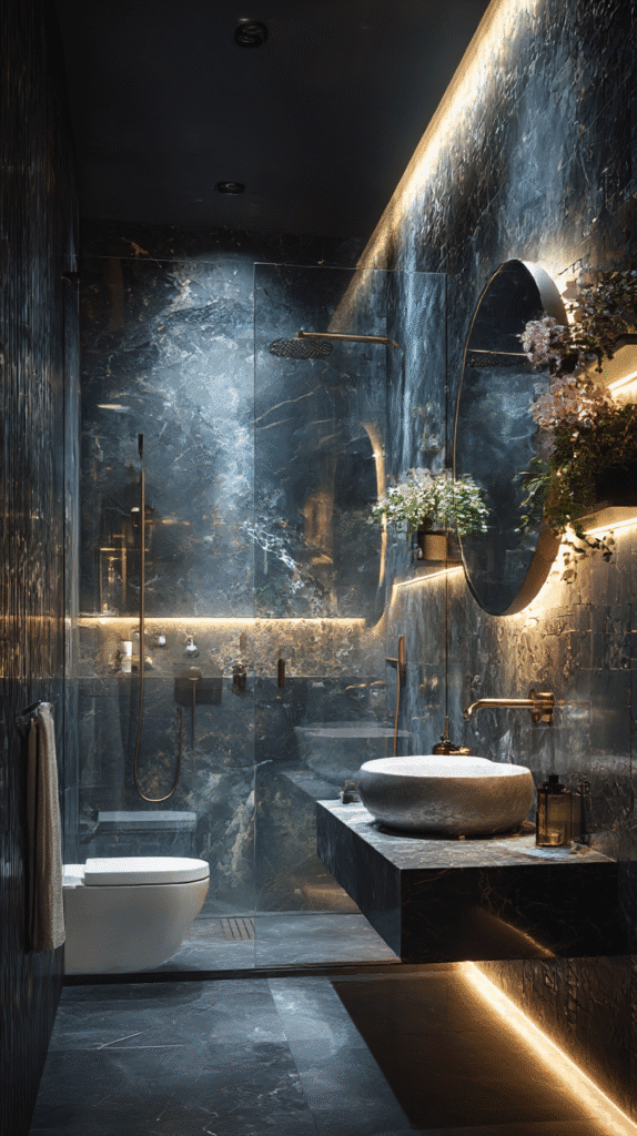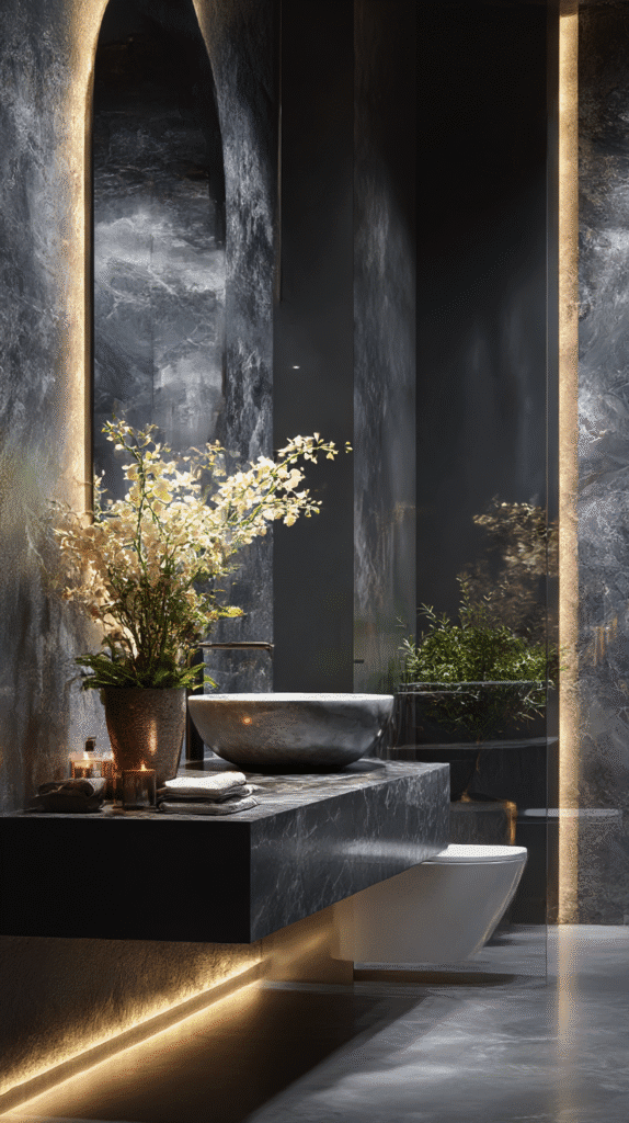 Let’s consider the famous painter, Rothko, known for his moody, contemplative canvases. Just like his art, these bathrooms draw you in, inviting contemplation and awe. Whether it’s the rich, deep blues or the enticing charcoals, you can harness the magic of mood in your little sanctuary.